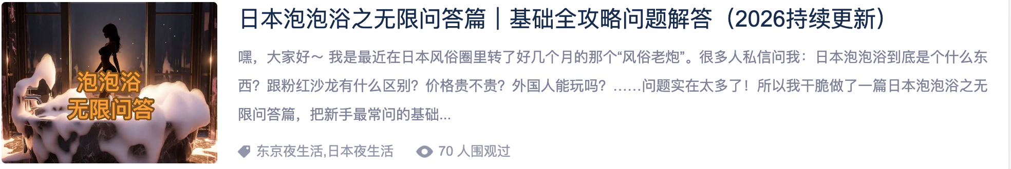 当然人家不愿意也不要强求,就感受感受这个技巧就好了,在日本如果要找本番就看看泡泡浴,或者那些伴游类的项目
